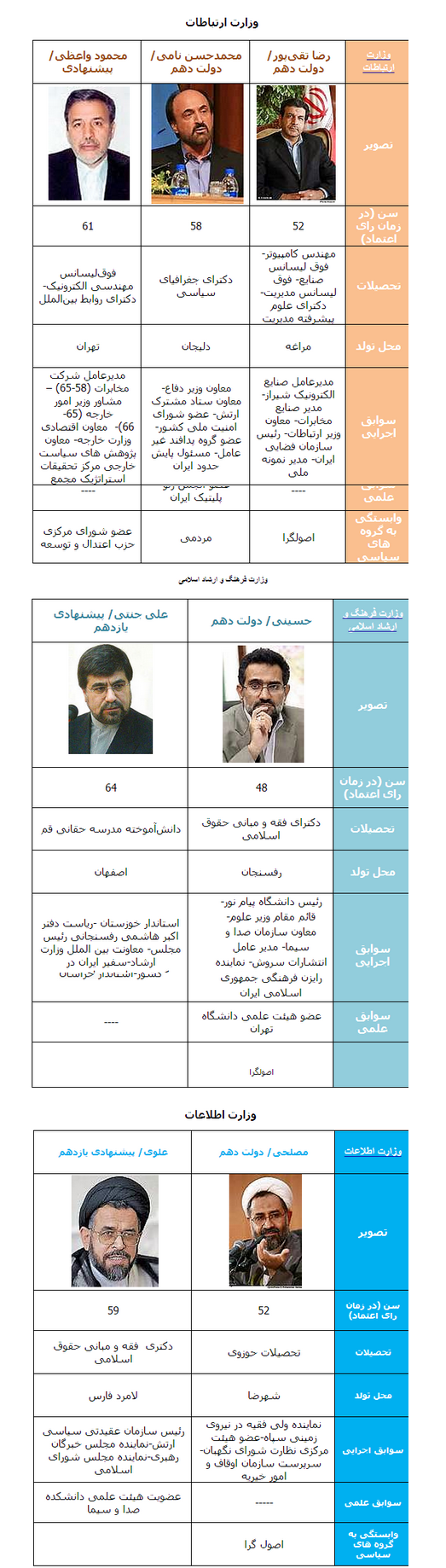 مقایسه وزرای دولت دهم با وزرای پیشنهادی دولت یازدهم + جداول کامل